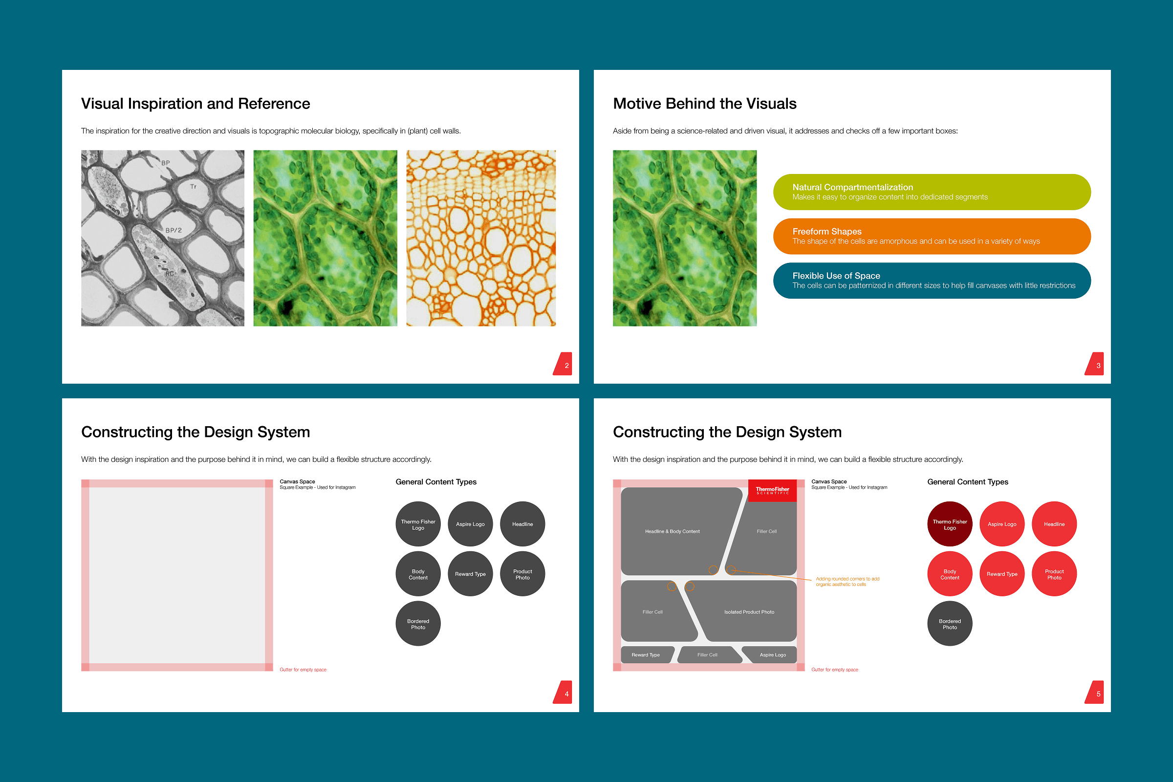 The design drew inspiration from topographic molecular biology - creating an intuitive structure for image and content hierarchy. It was important that certain elements of the system - such as the color palette, typography, and minimal aesthetic - stayed true to the overall corporate brand identity of Thermo Fisher Scientific.