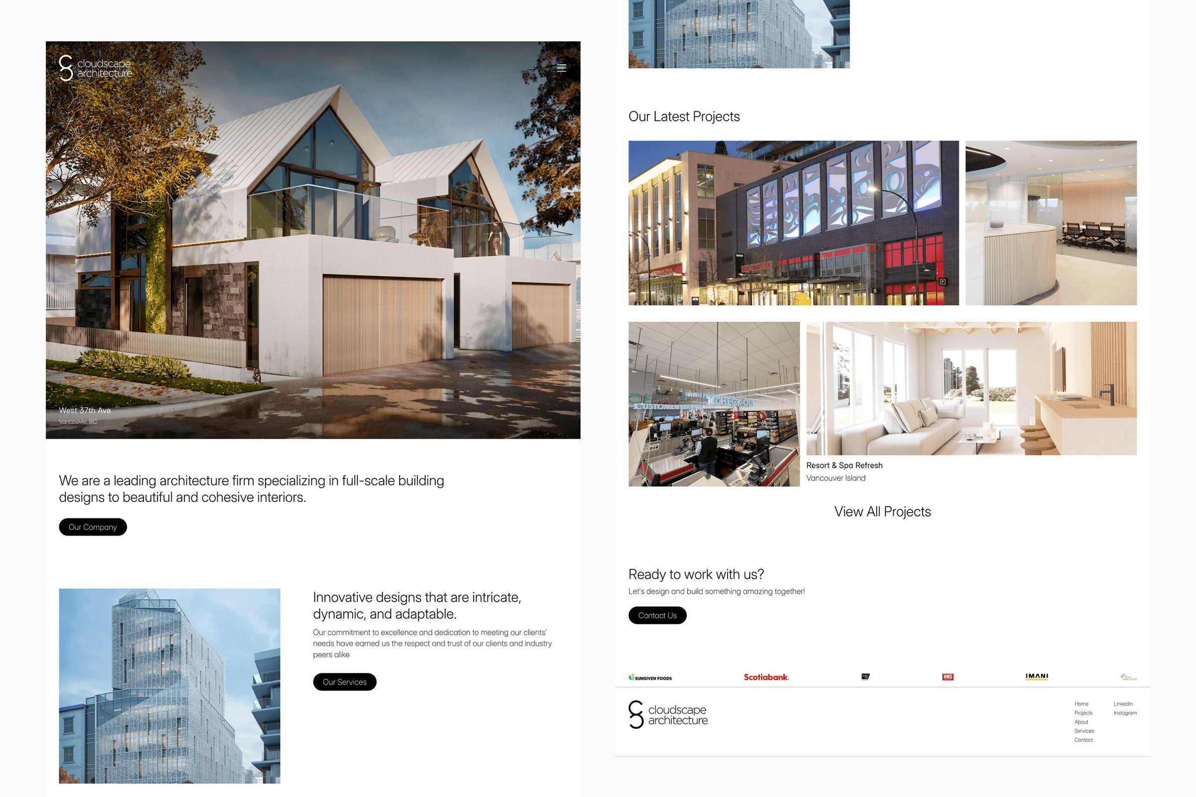 Along with the new brand identity, the Cloudscape team and I worked together to design out and build a new website that reflects their new identity.